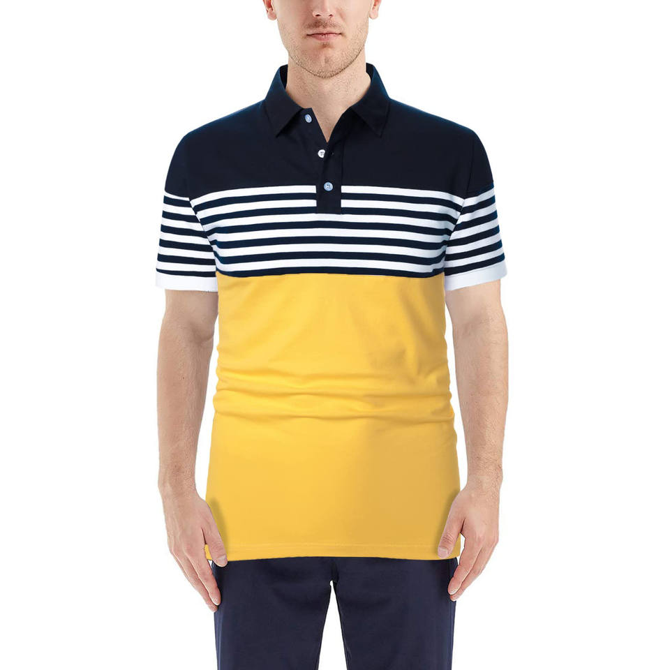 เสื้อโปโลผู้ชายลายทางผ้าโพลีเอสเตอร์100% แนวสตรีทระบายอากาศได้ดีเสื้อกอล์ฟแขนสั้นโลโก้กำหนดเอง