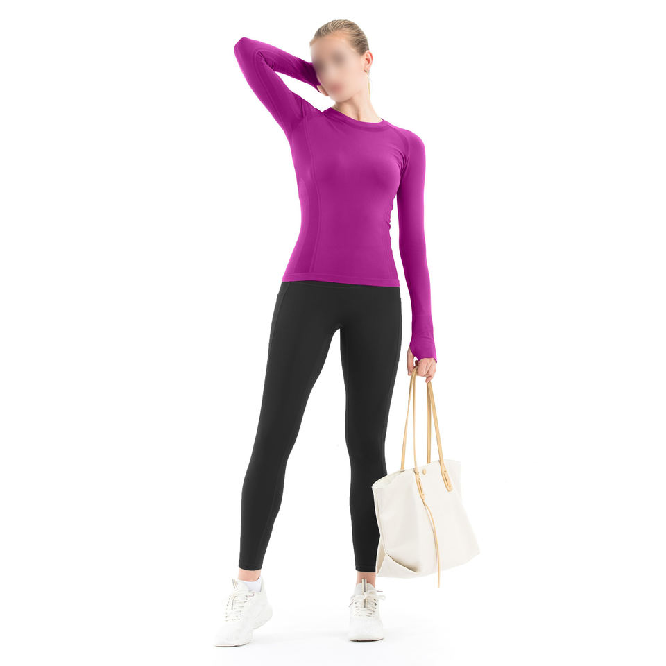 เสื้อโยคะคอกลมแขนยาวสำหรับผู้หญิง ระบายอากาศ แห้งเร็ว ซับเหงื่อ พร้อมโลโก้สั่งทำพิเศษ เหมาะสำหรับออกกำลังกาย วิ่ง และเล่นโยคะ