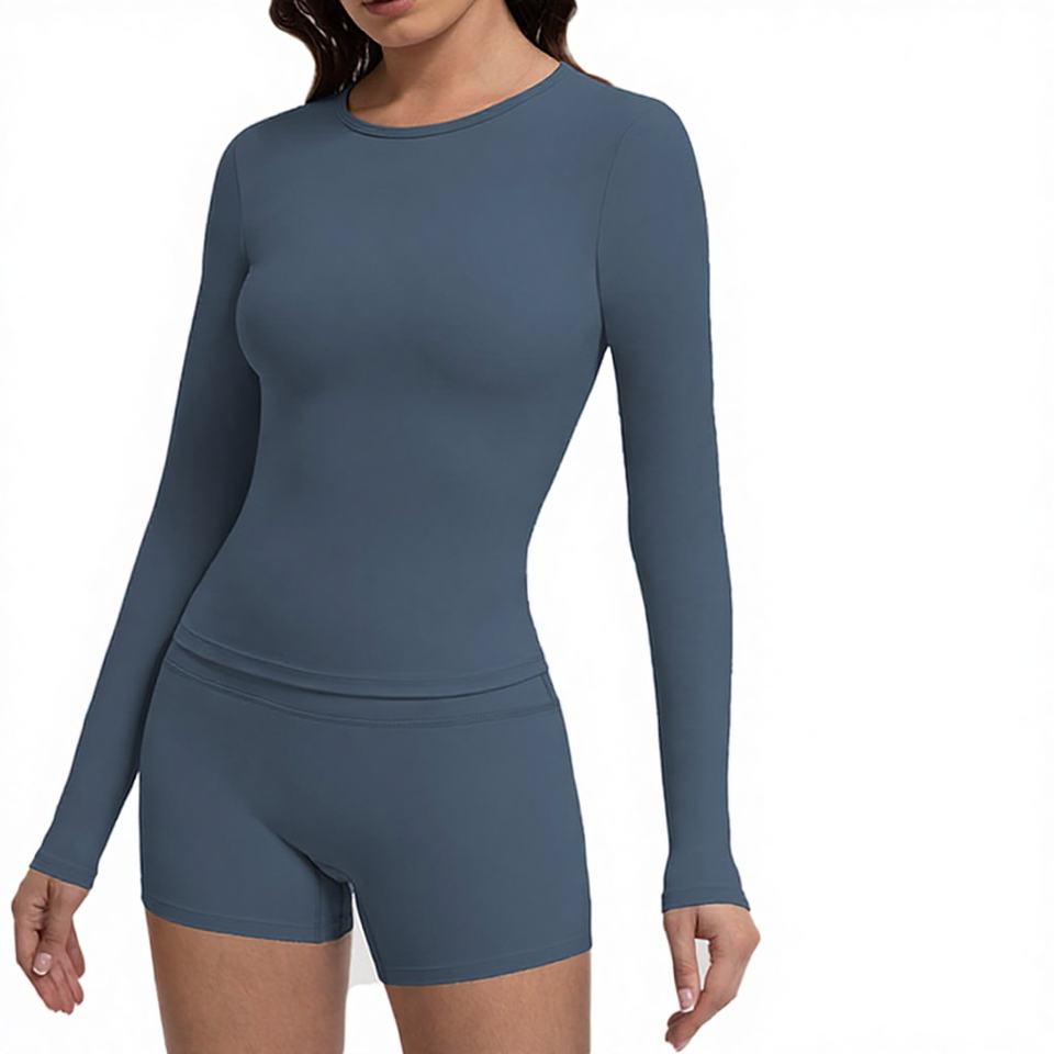 เสื้อยืดโยคะแขนยาวแฟชั่นผู้หญิงระบายอากาศได้ดี พิมพ์โลโก้ได้ตามต้องการ เหมาะสำหรับวิ่งและออกกำลังกาย