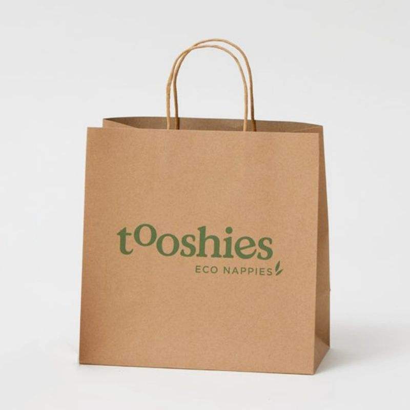 ถุงกระดาษคราฟท์สีน้ำตาลพิมพ์โลโก้ตามสั่ง เป็นมิตรกับสิ่งแวดล้อม รีไซเคิลได้ สำหรับบรรจุภัณฑ์เสื้อผ้า รองเท้า ขายส่ง