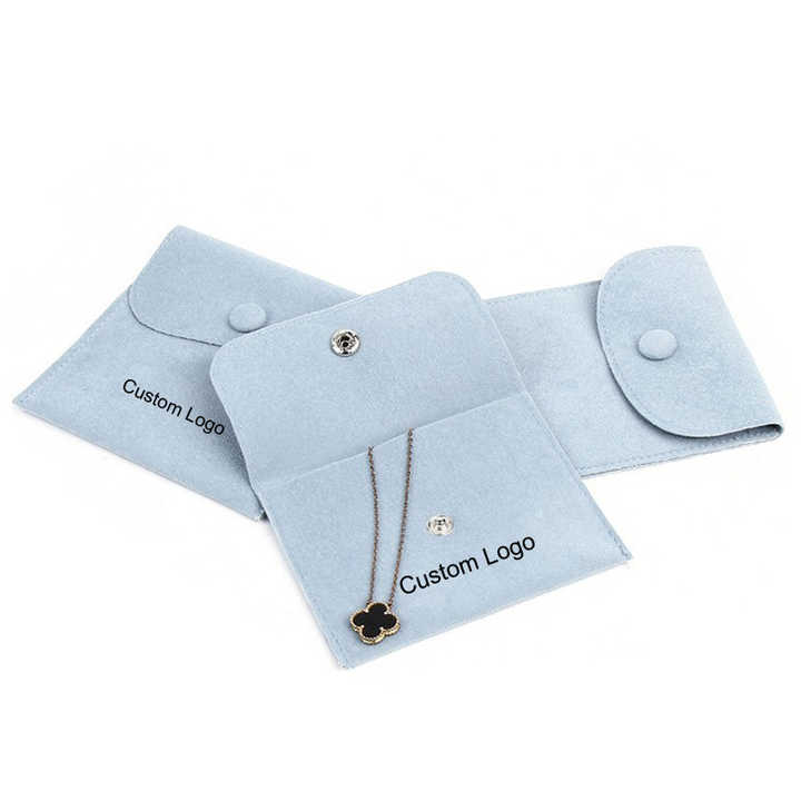 ถุงใส่เครื่องประดับทำมือแบบรีไซเคิล ผ้ากำมะหยี่เนื้อนุ่ม สีชมพู ปิดด้วยกระดุมติดโลโก้แบบกำหนดเอง รูปทรงซองจดหมาย สำหรับใส่สร้อยคอ
