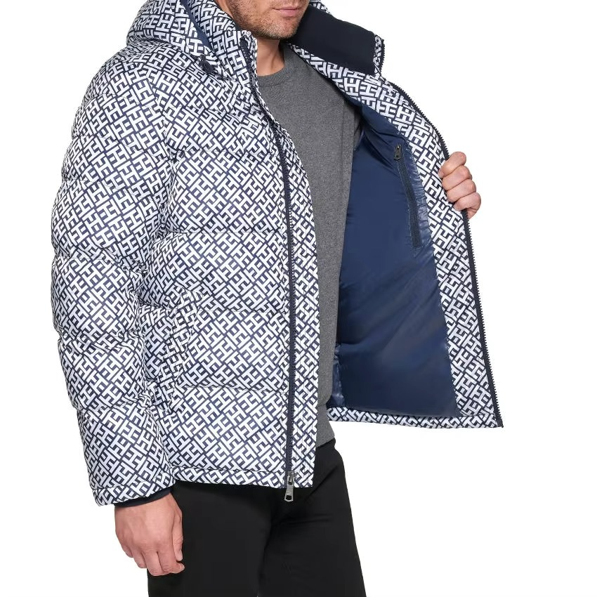 เสื้อแจ็คเก็ตพัฟเฟอร์ลายพรางปักโลโก้ตามสั่ง แบบยูนิเซ็กส์ กันน้ำ เป็นมิตรกับสิ่งแวดล้อม เสื้อโค้ทบับเบิ้ลสั้น สไตล์ไฮสตรีท สำหรับฤดูใบไม้ผลิ