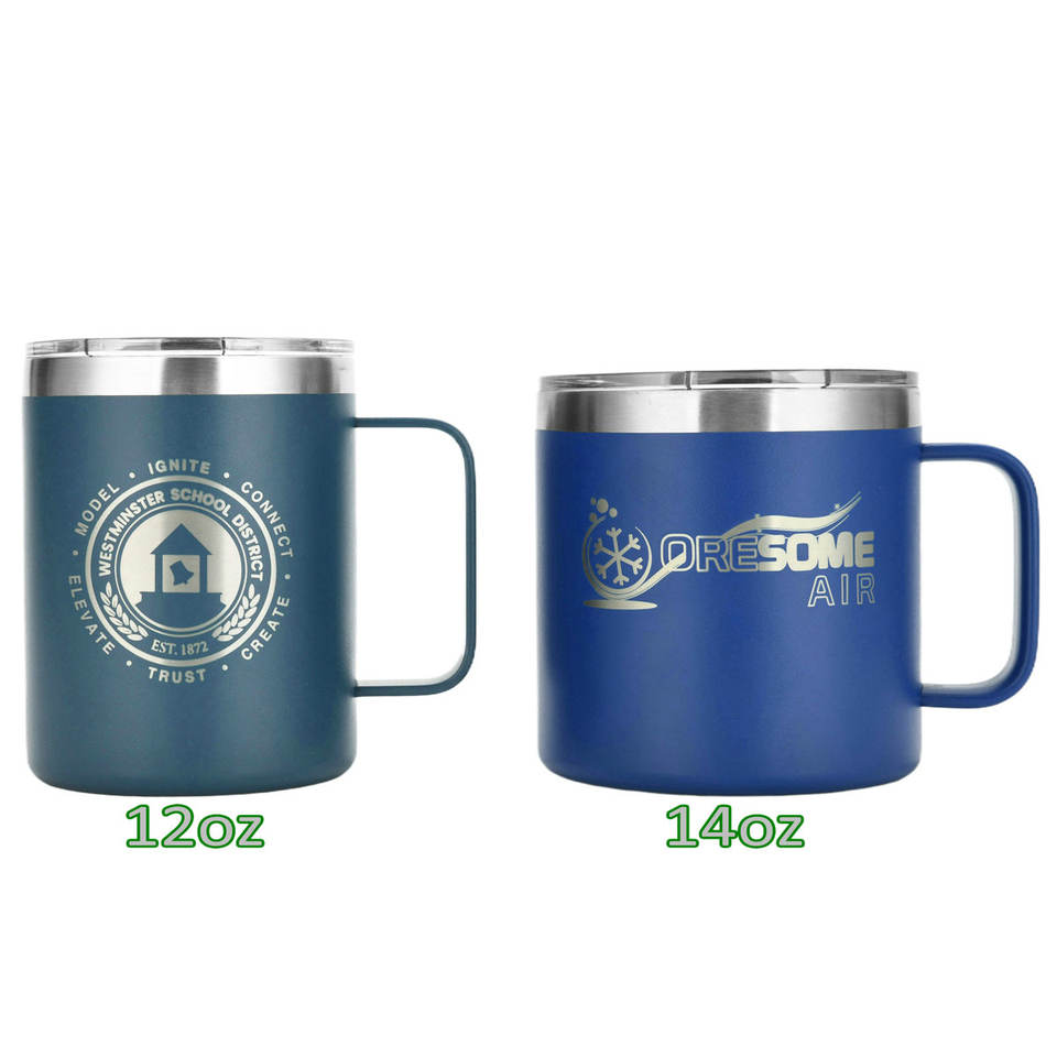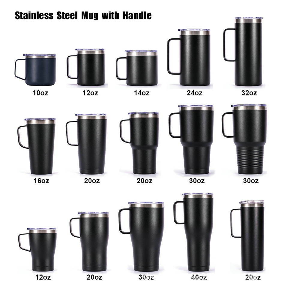 แก้วกาแฟแบบพกพาผนังสองชั้นพร้อมโลโก้สั่งทำพิเศษ ขนาด 12 ออนซ์ 14 ออนซ์ แก้วน้ำสแตนเลสมีหูจับ พร้อมฝาปิด