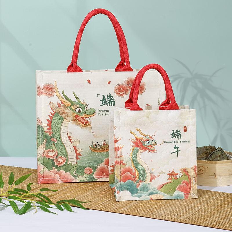 กระเป๋าช็อปปิ้งผ้าใบโลโก้ตามสั่งพร้อมเรือ Loong และมังกรมงคลสำหรับการโปรโมตขององค์กรและการโฆษณาในซูเปอร์มาร์เก็ต