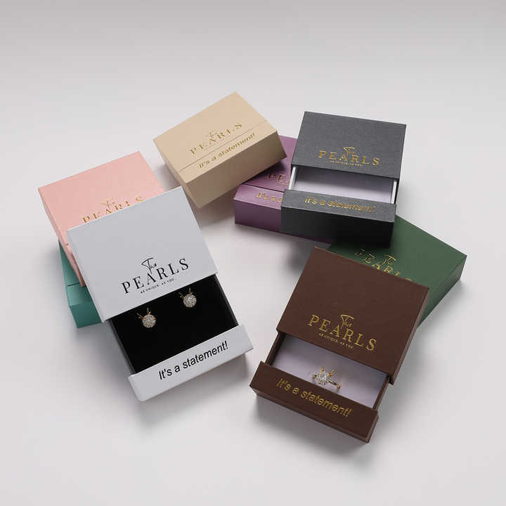 กล่องเครื่องประดับทำจากกระดาษแข็งทรงสี่เหลี่ยมลิ้นชักทำจากวัสดุกำมะหยี่สำหรับบรรจุของขวัญต่างหูสร้อยข้อมือ