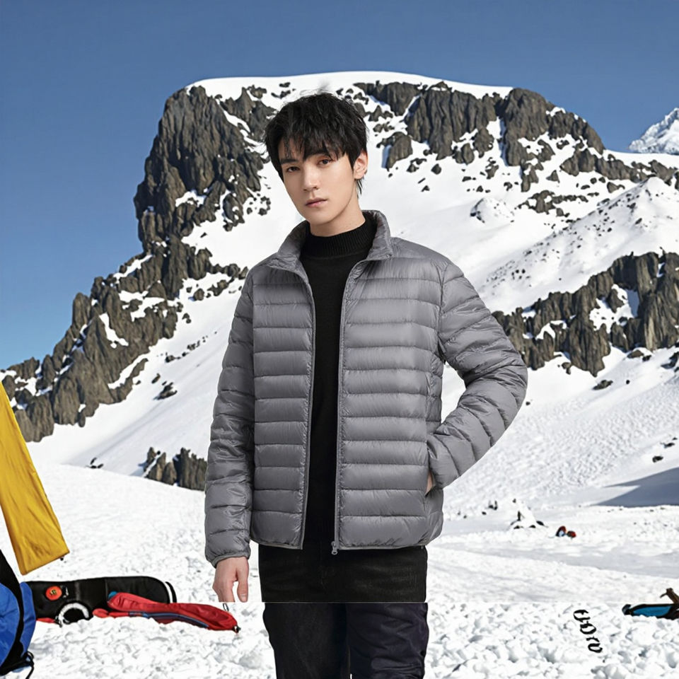เสื้อแจ็คเก็ตพัฟเฟอร์ลำลองสำหรับผู้ชาย พิมพ์โลโก้ได้ หนา อุ่น เหมาะสำหรับกิจกรรมกลางแจ้ง คอตั้ง ปิดซิป ทรงหลวม ใส่ได้ในฤดูใบไม้ร่วง