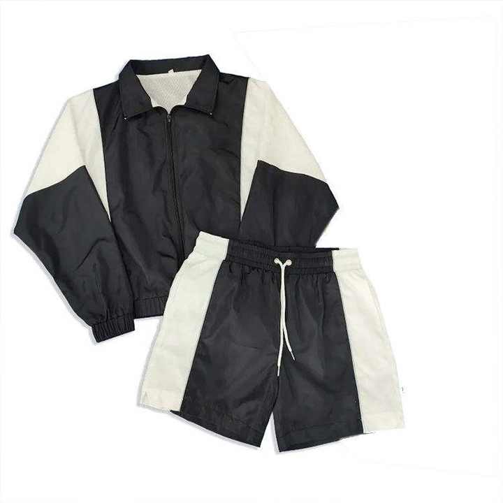 ชุดลำลองสองชิ้นพิมพ์โลโก้ตามสั่งสำหรับผู้ชาย ชุดวอร์มกางเกงขาสั้นระบายอากาศ ชุดกันลม