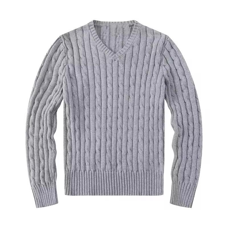 เสื้อไหมพรมคอวี แขนยาว ปักลาย แฟชั่นฤดูหนาวลำลองสำหรับผู้หญิง โลโก้แบบกำหนดเอง ผ้าถักลายเคเบิ้ล ระบายอากาศได้ดี