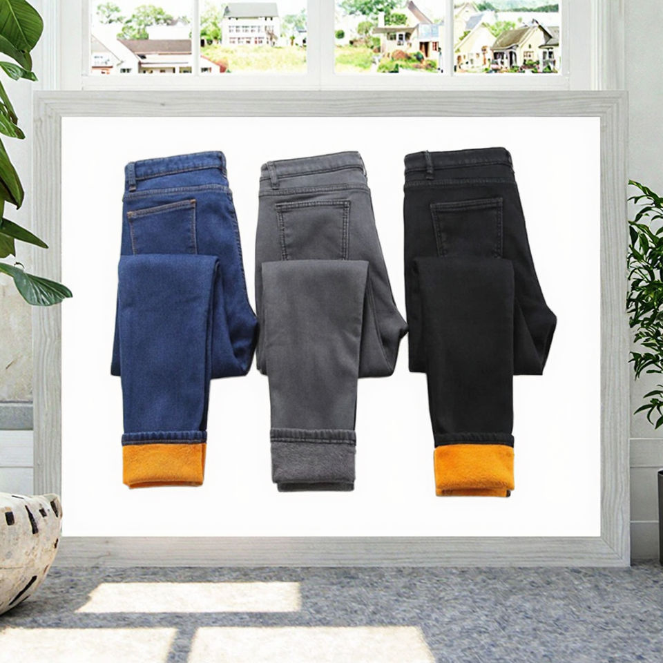 กางเกงทรงดินสอผ้ากำมะหยี่สำหรับฤดูหนาว สวมใส่สบาย เป็นมิตรกับสิ่งแวดล้อม ระบายอากาศได้ดี เอวสูง ไซส์ใหญ่ ผ้าเดนิมหนา รับสกรีนโลโก้