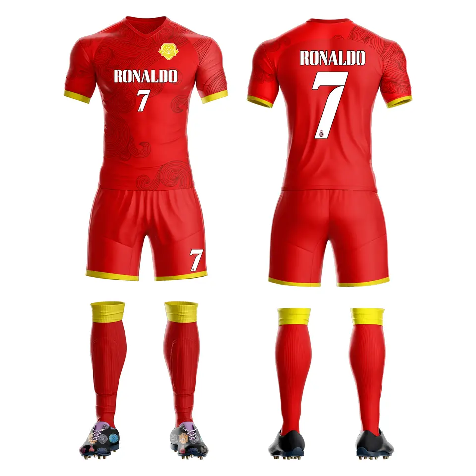 ชุดเสื้อฟุตบอลแบบแห้งเร็วชุดเสื้อเจอร์ซีย์สำหรับ S0ortswear ในฤดูกาลใหม่โลโก้แบบกำหนดเอง