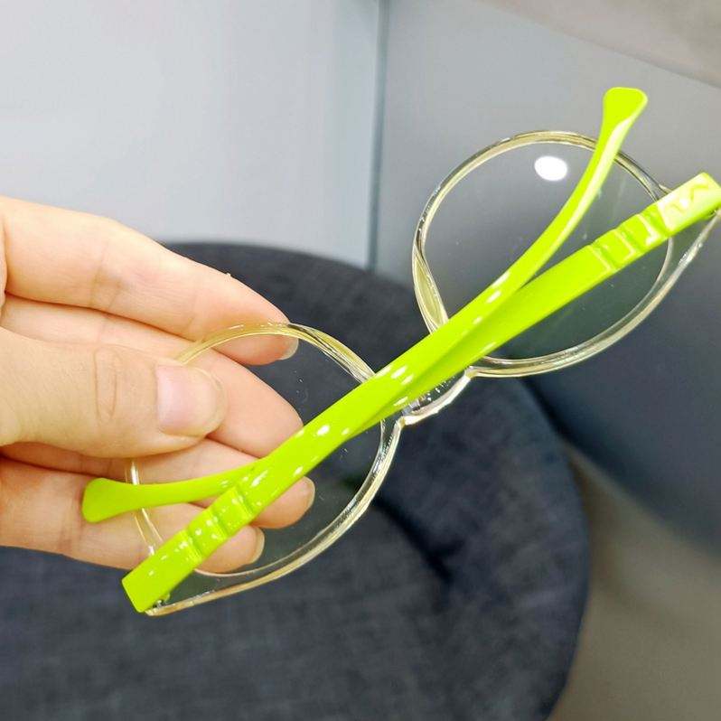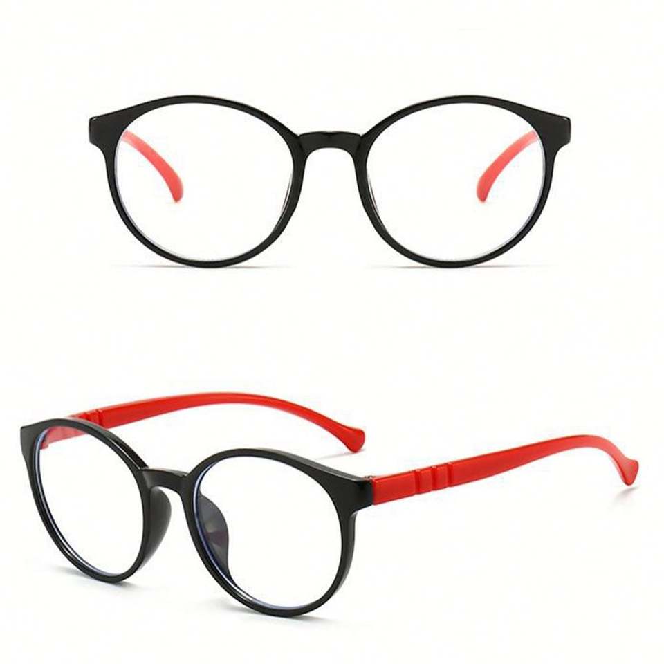 กรอบแว่นตาเด็กพิมพ์โลโก้ได้ แว่นตาคอมพิวเตอร์ทรงกลมใสสำหรับเด็กชายและเด็กหญิง วัสดุ TR90 ป้องกันแสงสีฟ้าสำหรับเด็ก