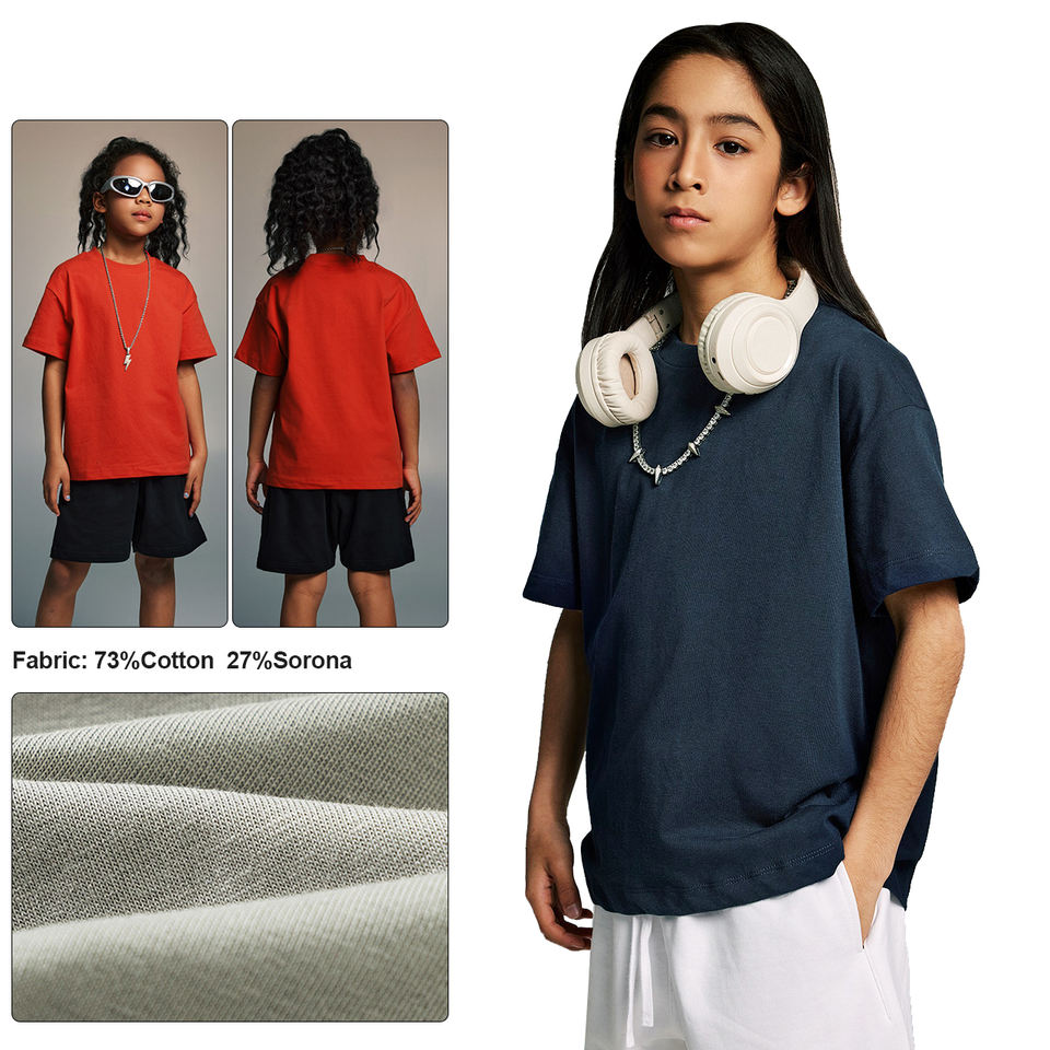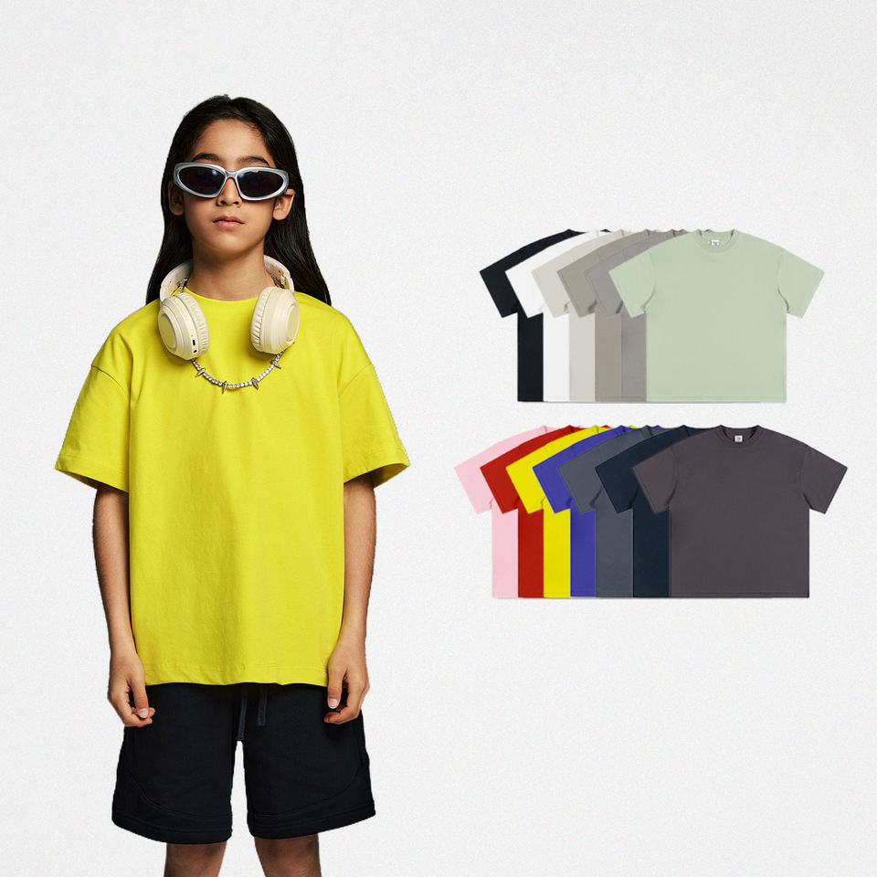 เสื้อยืดแขนสั้นสำหรับเด็กเสื้อยืดผ้าฝ้ายโอเวอร์ไซส์สีพื้นสำหรับเด็กชายและเด็กหญิงใส่ฤดูร้อนโลโก้ได้ตามต้องการ