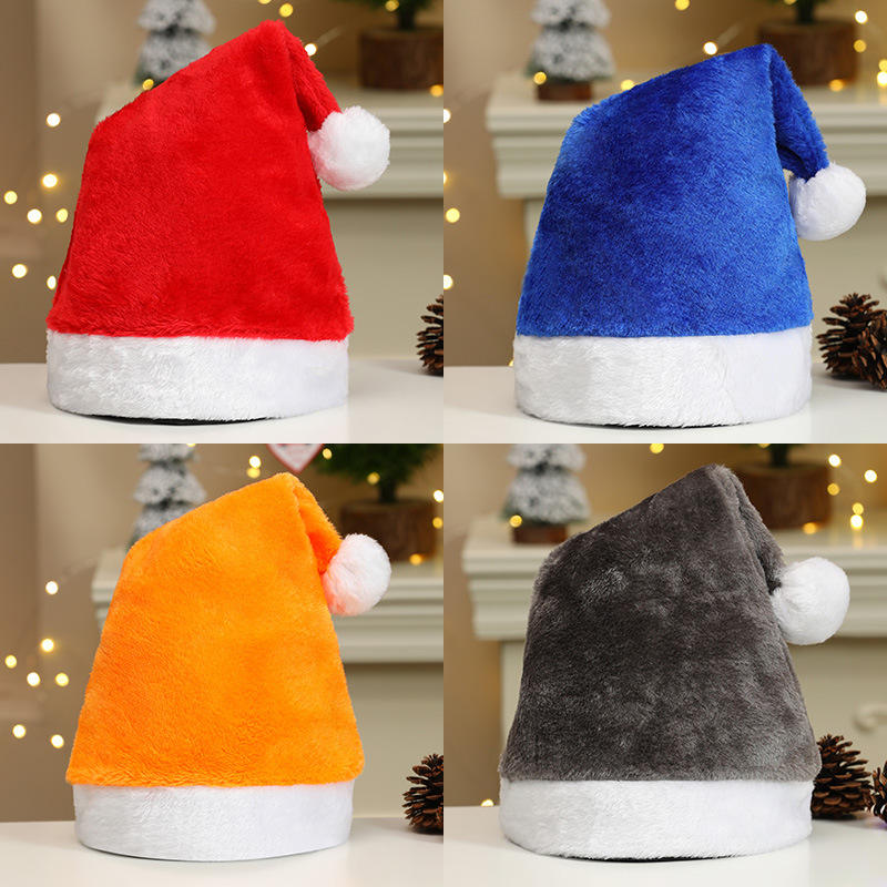 หมวกคริสต์มาสแบบปรับโลโก้ได้หมวกคริสต์มาสซานต้าผ้ากำมะหยี่สีแดงสีเขียวสีชมพูสีน้ำเงินสีดำสีเทาสีม่วง