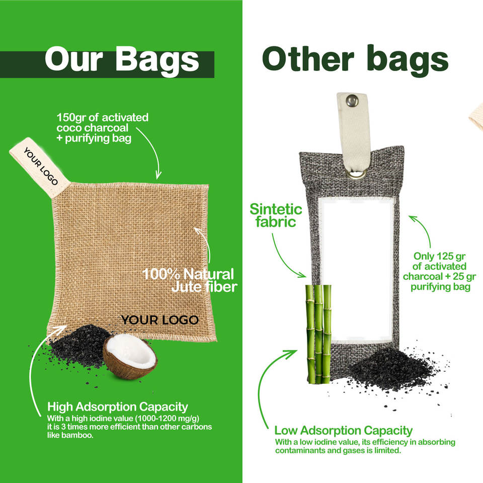 Custom Logo Coconut Activated Carbon Air Purifying Bag Solid Deodorizer for Home and Car Odor Humidity Control Made in Mexico