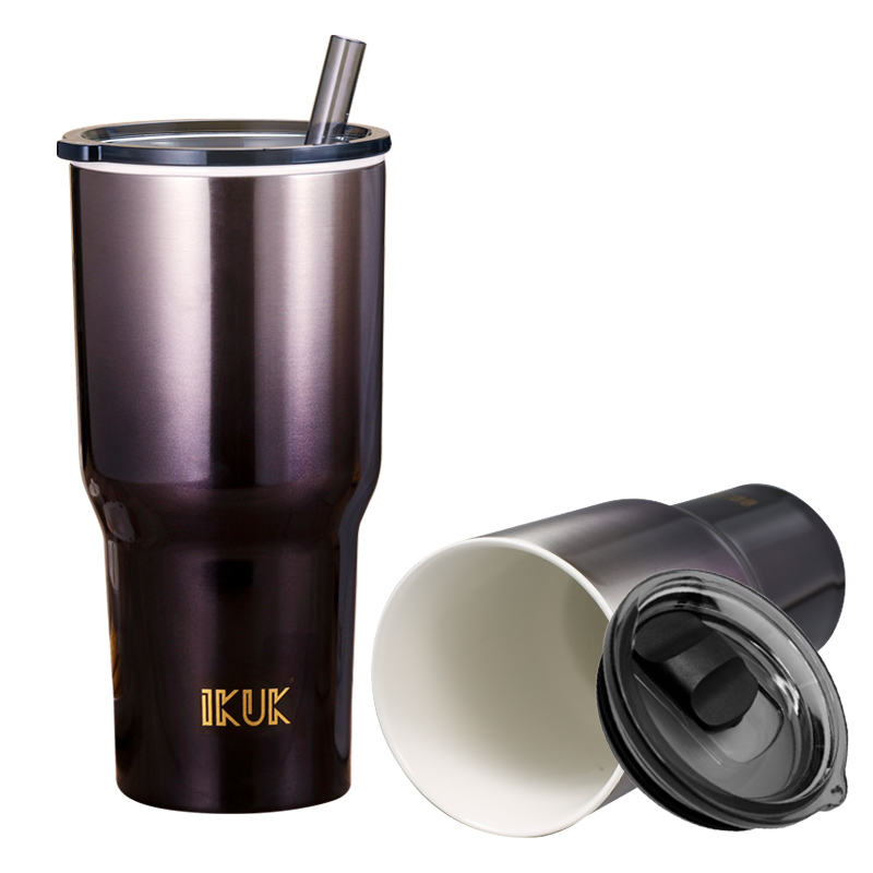 แก้วน้ำสูญญากาศสองชั้นความจุ30ออนซ์/900มล. กระติกน้ำแนวสปอร์ตพร้อมหลอดโลโก้ออกแบบได้ตามต้องการ