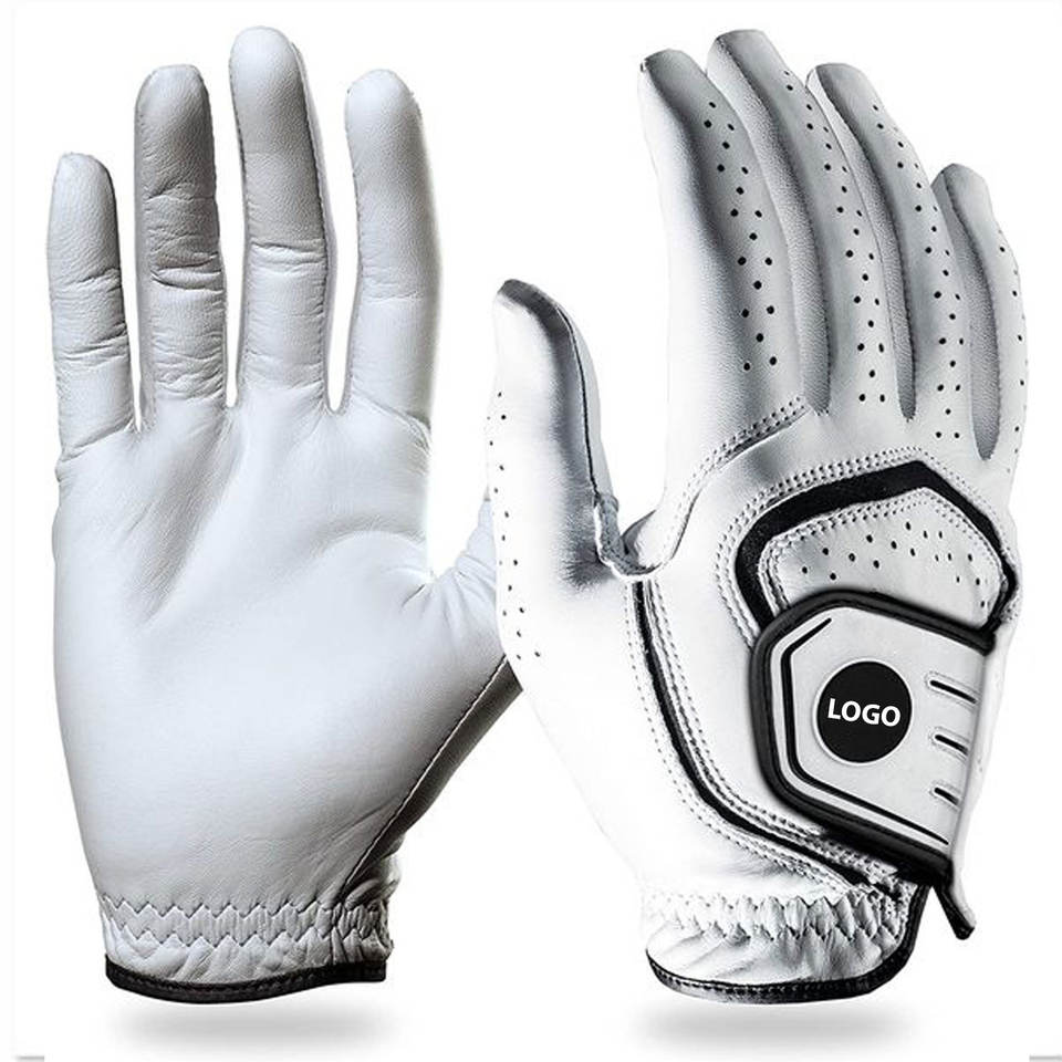 ถุงมือกอล์ฟหนังแกะสำหรับผู้ใหญ่ถุงมือกอล์ฟดีไซน์แบบมีรูระบายอากาศขนาดใหญ่โลโก้ออกแบบได้ตามต้องการ