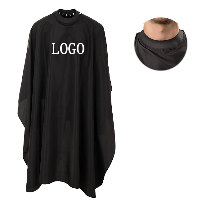 ผ้าคลุมตัดผมสำหรับช่างทำผม ผ้าโพลีเอสเตอร์กันน้ำ สวมใส่สบาย สำหรับผู้ใหญ่ พร้อมโลโก้สั่งทำ สีดำ