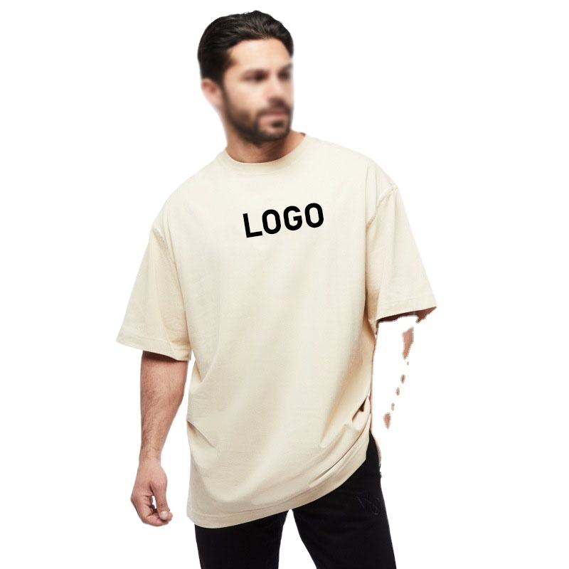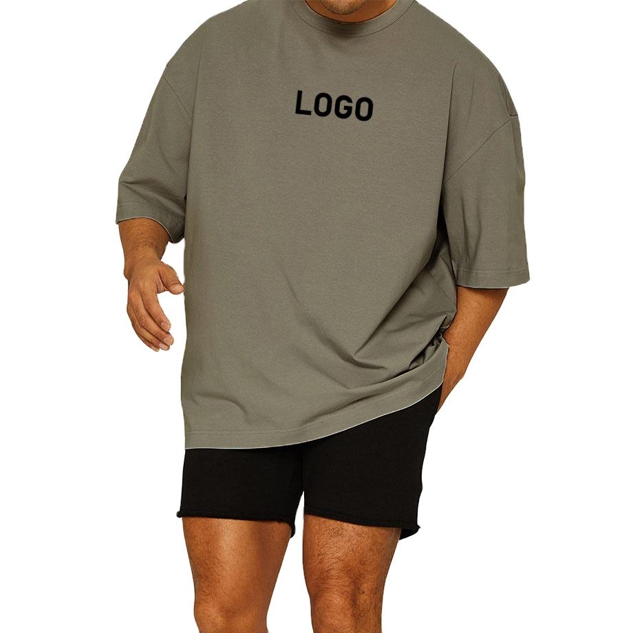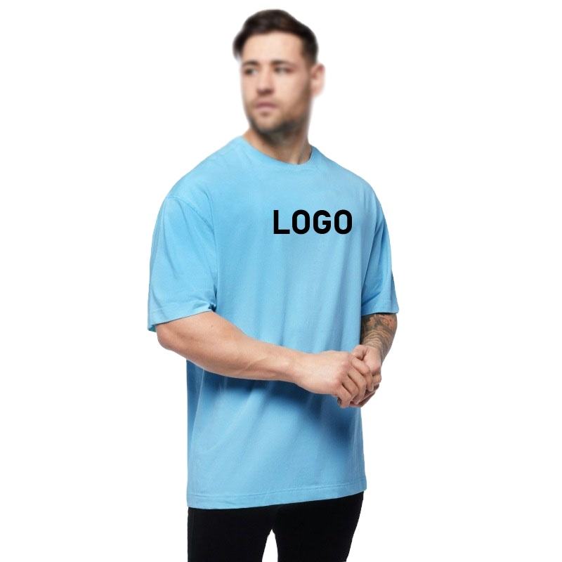 เสื้อยืดออกกำลังกายผ้าฝ้าย100% ใส่สบายสำหรับผู้ชายทรงหลวมโอเวอร์ไซส์พร้อมโลโก้ออกแบบใหม่สำหรับออกกำลังกายไหล่กว้าง