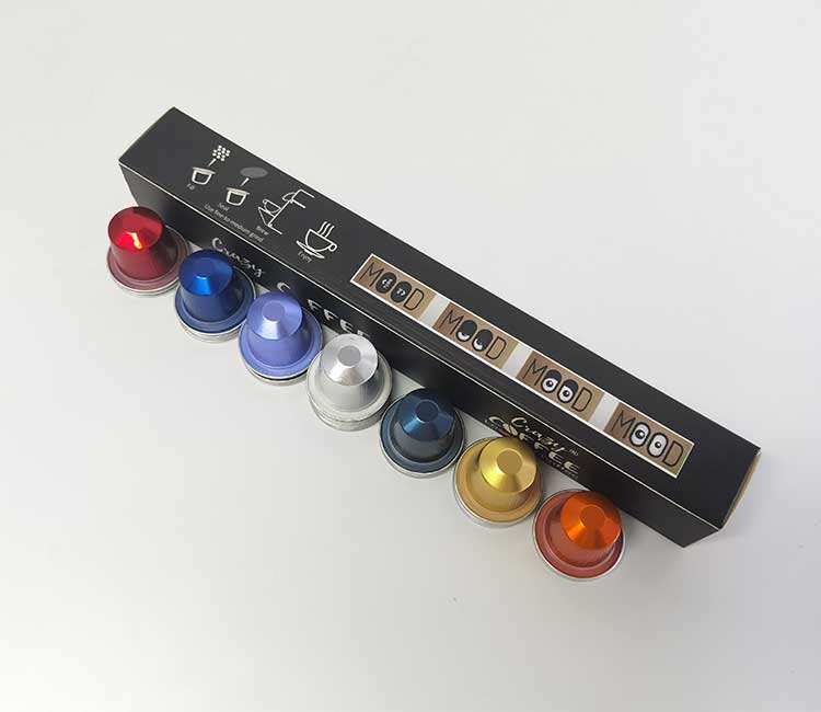 แคปซูลกาแฟอะลูมิเนียมเปล่า ขนาดที่รองรับโลโก้แบบกำหนดเอง 12 สี พร้อมสติกเกอร์ปรับแต่งได้