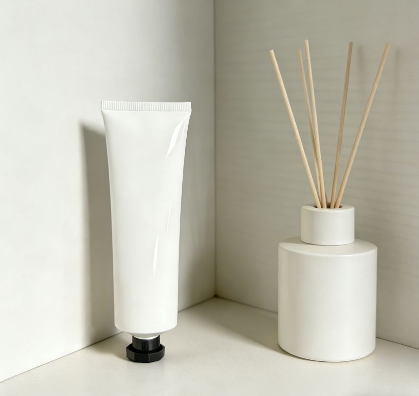 หลอดพลาสติกสีขาวสำหรับครีมทามือ ผลิตภัณฑ์ดูแลผิวหน้า ขนาด 30 มล. 50 มล. 100 มล. พร้อมฝาเกลียวสีดำ รับทำโลโก้ตามสั่ง