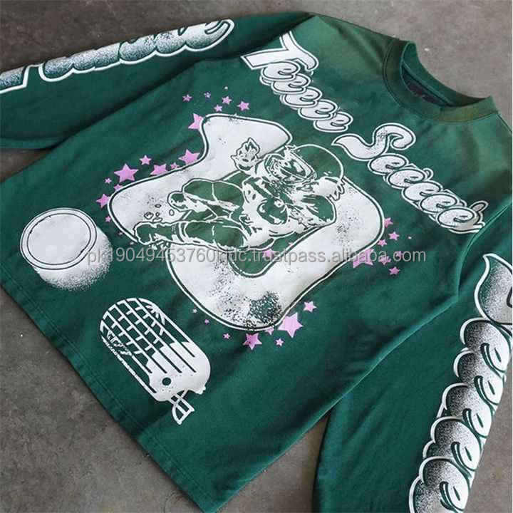 เสื้อยืดแขนยาวผ้าฝ้ายโอเวอร์ไซส์สำหรับผู้ชายเสื้อโอเวอร์ไซส์สไตล์วินเทจ
