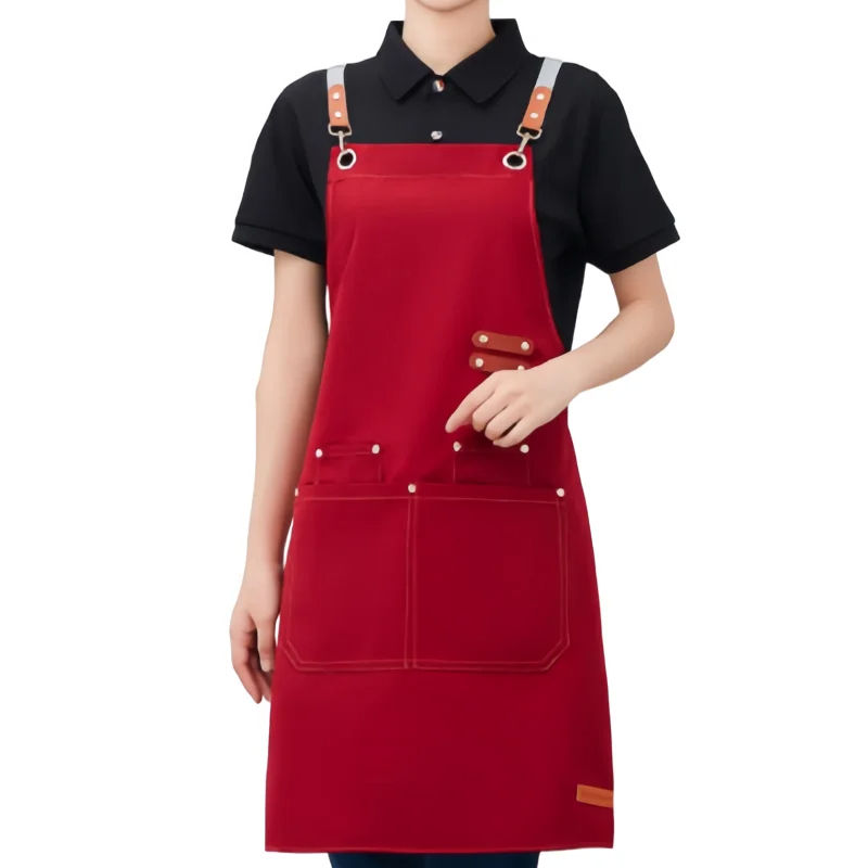 ผ้ากันเปื้อนผ้าฝ้ายปักลายสำหรับทำอาหารเชฟผ้าแคนวาสสำหรับใช้ในครัวลายดอกไม้ใส่ชาและกาแฟสำหรับบริกรทำงาน