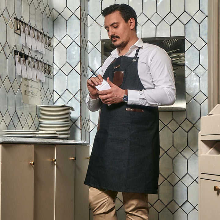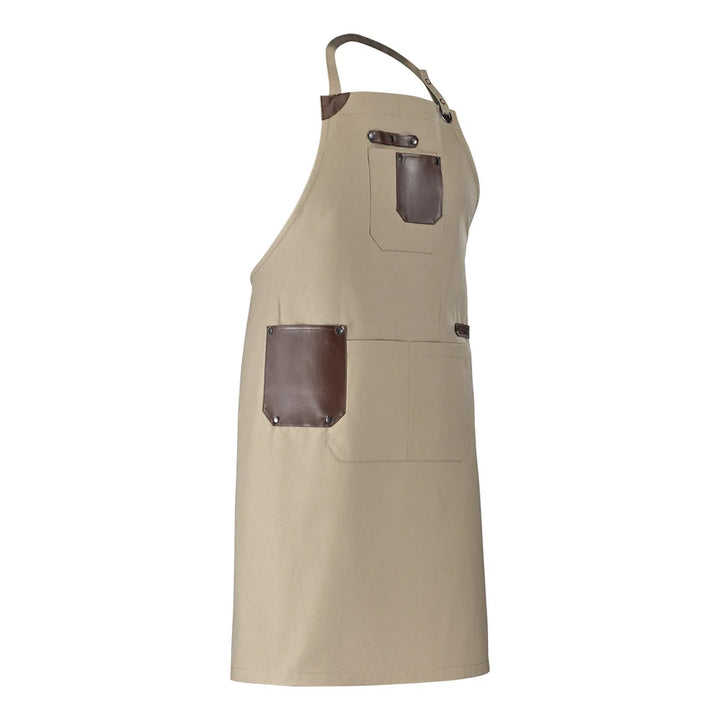 ผ้ากันเปื้อนสำหรับเชฟที่มีกระเป๋าผ้ากันเปื้อนผ้าฝ้ายกันน้ำกันน้ำมันโลโก้ออกแบบได้ตามต้องการ