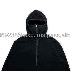 เสื้อฮู้ดดี้ผ้าฝ้ายพิมพ์โลโก้แบบกำหนดเอง ฮู้ดคู่ ทรงนินจา ผ้าสองชั้น ไซส์ใหญ่ หนานุ่ม ซิปยาวคลุมหน้า สำหรับผู้ชาย