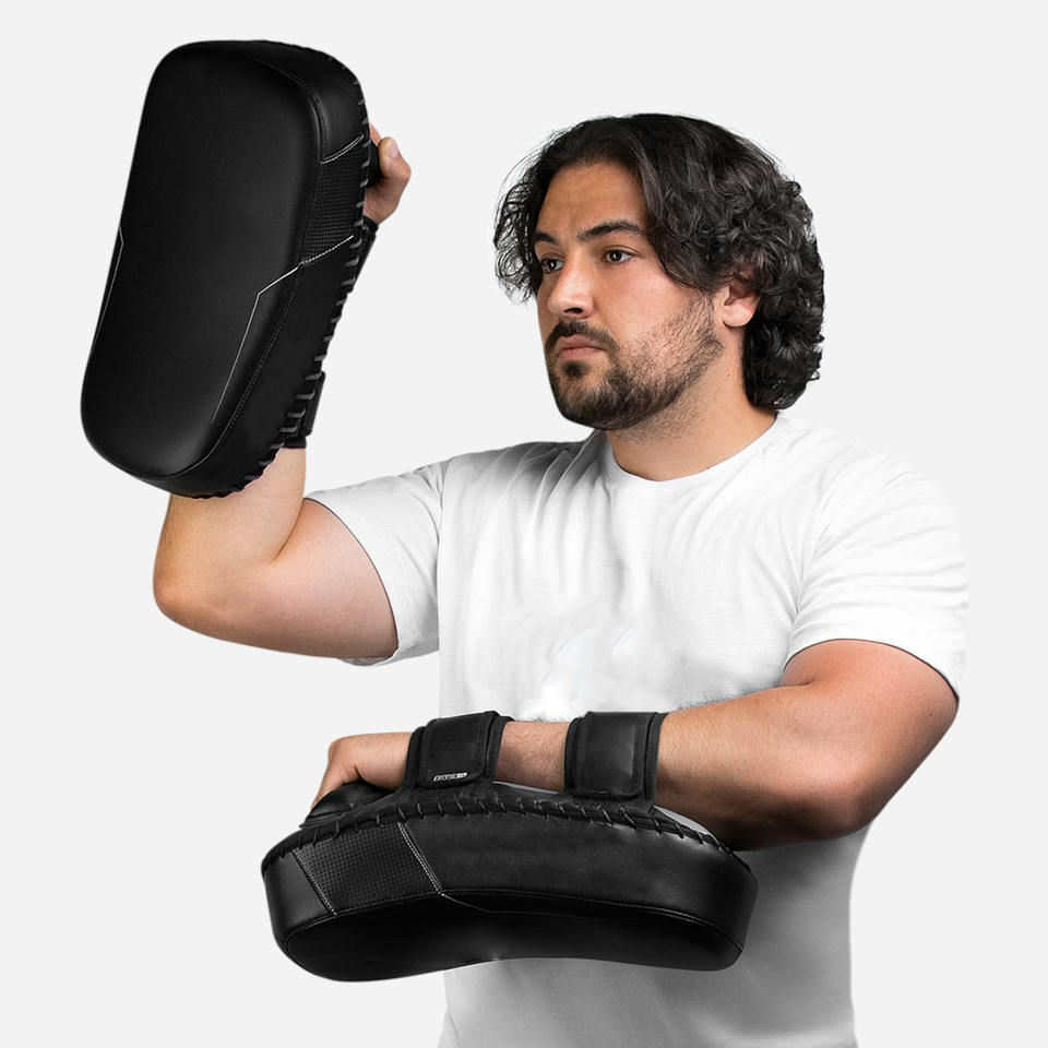 แผ่นรองเตะมวยไทยโค้งแบบมีโลโก้สั่งทำได้ ขายส่ง แผ่นรองเตะหนัง PU คุณภาพสูง สำหรับฝึกซ้อม MMA แผ่นรองเตะมวยไทย
