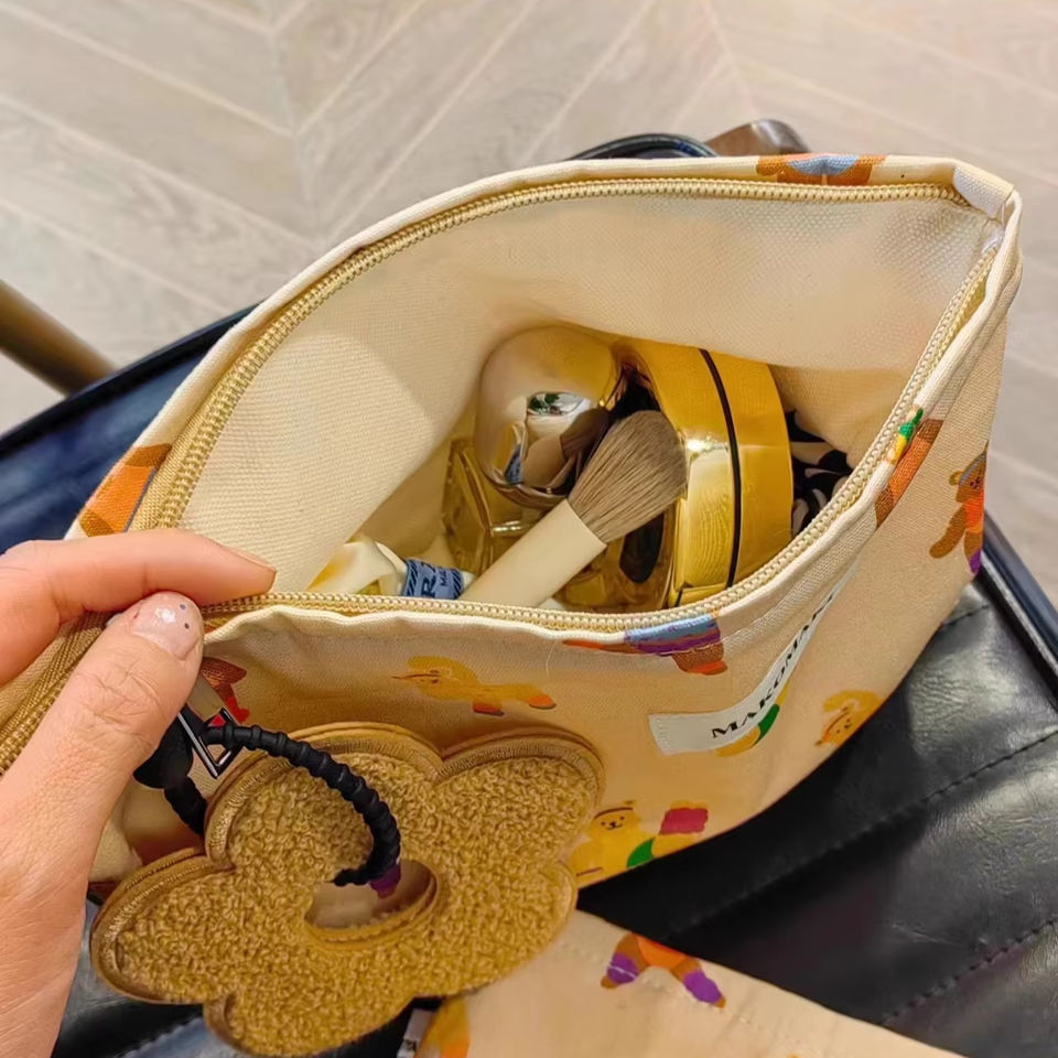 กระเป๋าเครื่องสำอางผ้าฝ้ายน่ารักพิมพ์โลโก้ได้ ชุดกระเป๋าใส่เครื่องสำอางแบบพกพา กระเป๋าใส่ของใช้ในห้องน้ำสำหรับเดินทาง สำหรับผู้หญิง สาวๆ และสุภาพสตรี