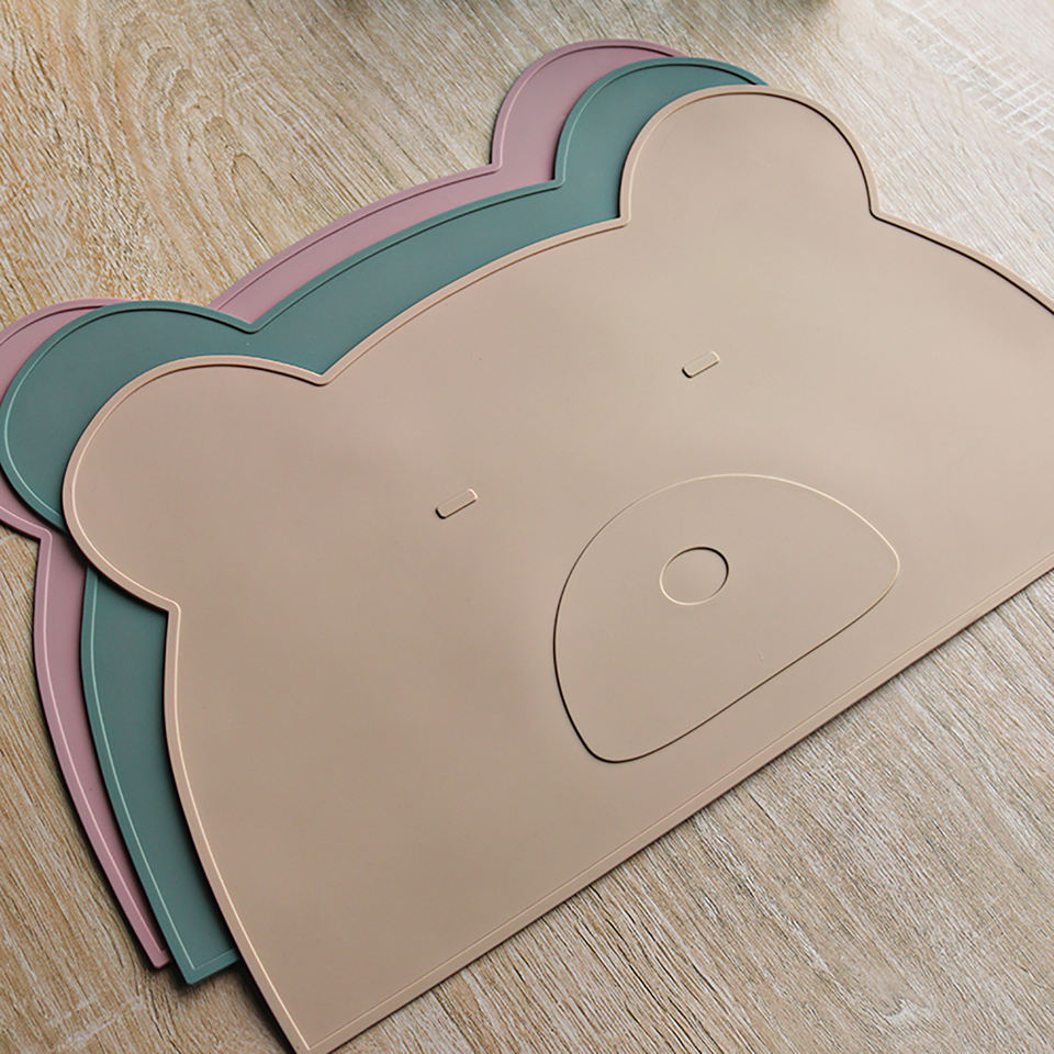 ที่รองซิลิโคนรูปหมีน่ารักโลโก้แบบกำหนดเองกันน้ำ, ป้องกันคราบ, ทำความสะอาดง่ายนุ่ม & ปลอดภัยสำหรับเด็กทารก