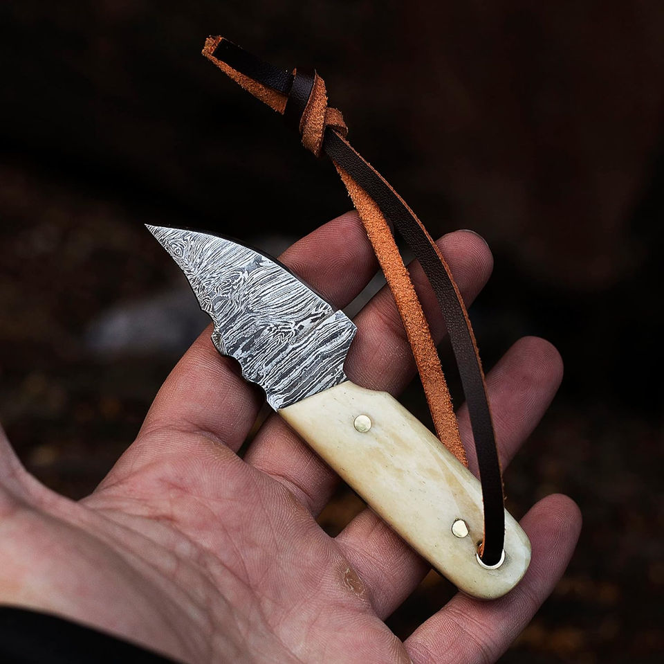 มีดเหล็กดามัสกัสใช้ในการตั้งแคมป์เพื่อความอยู่รอดเคสหนังคมมีดโกนมีโลโก้ออกแบบได้ตามต้องการ