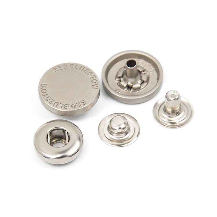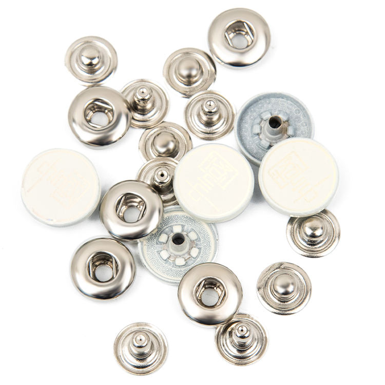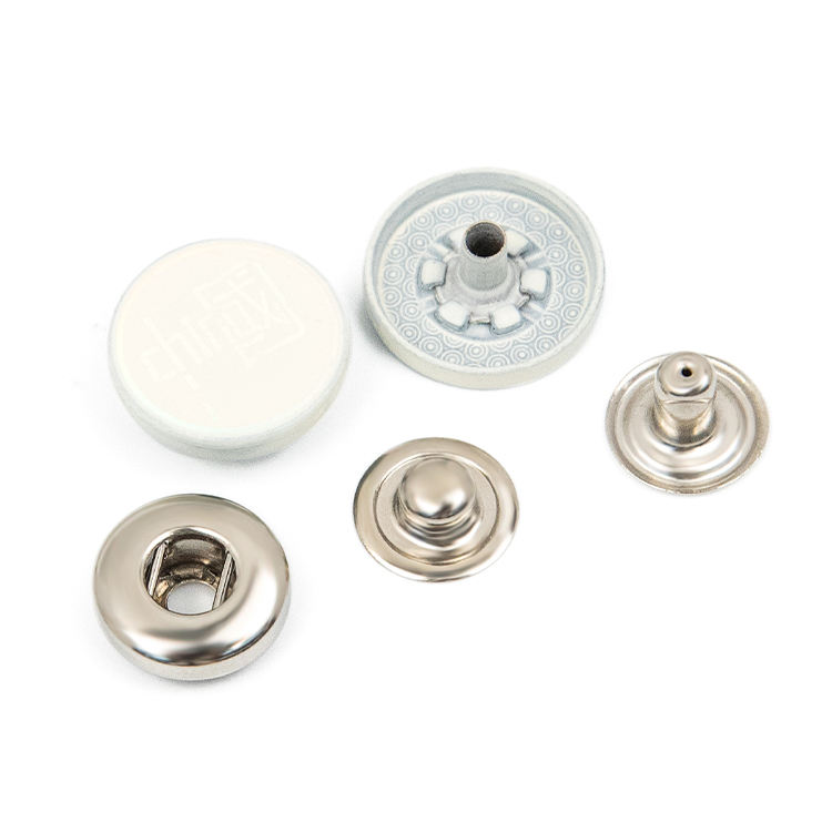 กระดุมโลหะสีขาวแบบกดสี่ส่วน ตกแต่งด้วยโลโก้ตามสั่ง สำหรับเสื้อผ้าและเครื่องแต่งกาย