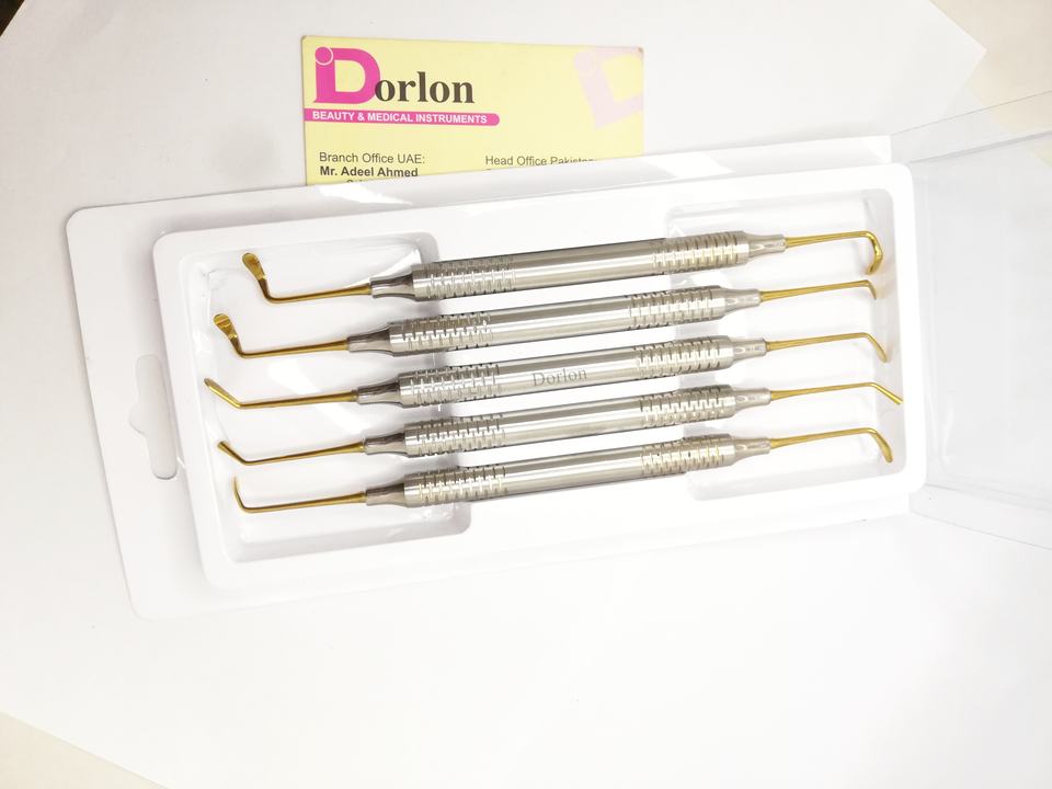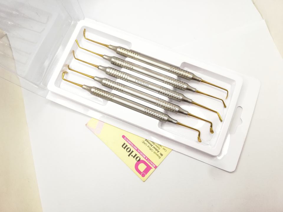ชุดเครื่องมือเติมฟันแบบประกอบเองโลโก้5ชิ้นหัวชุบทองทำจากสแตนเลส
