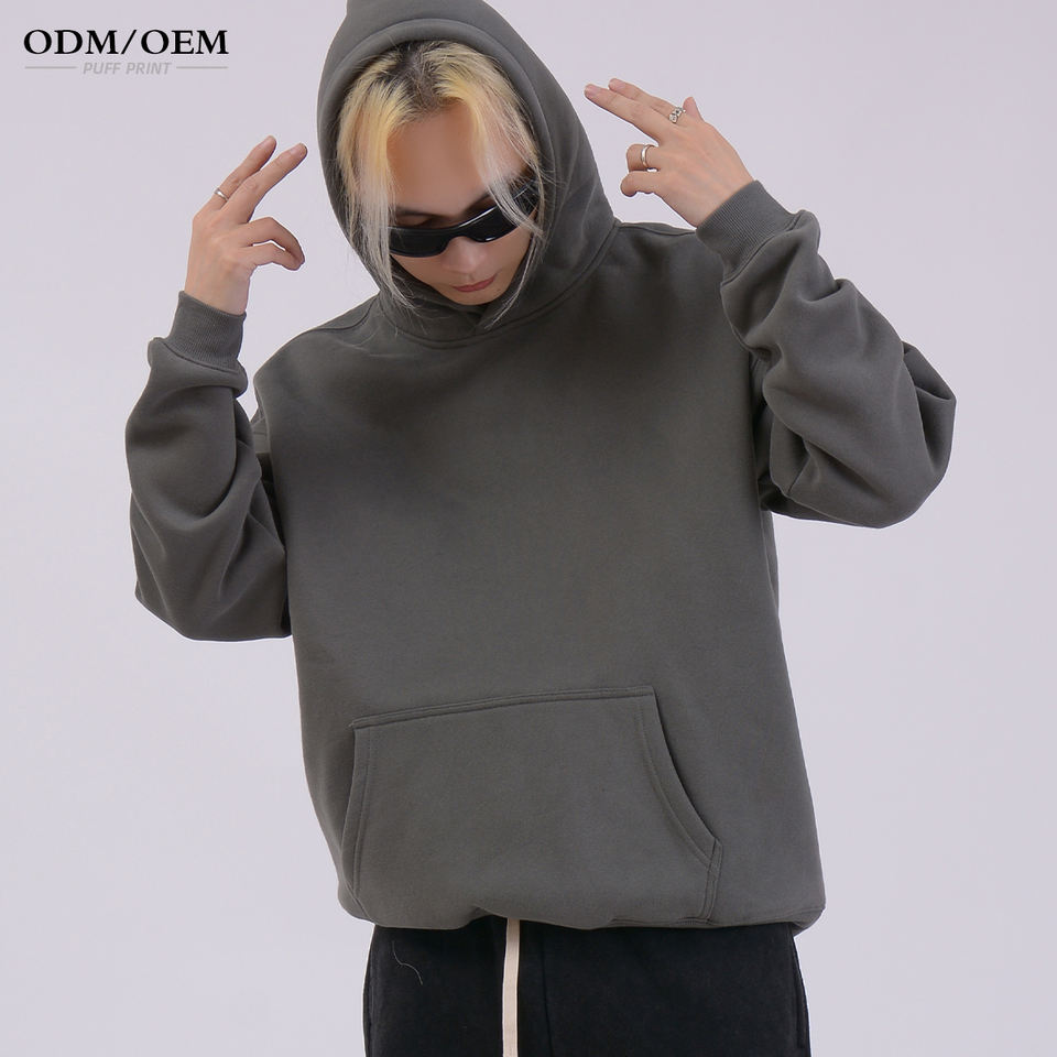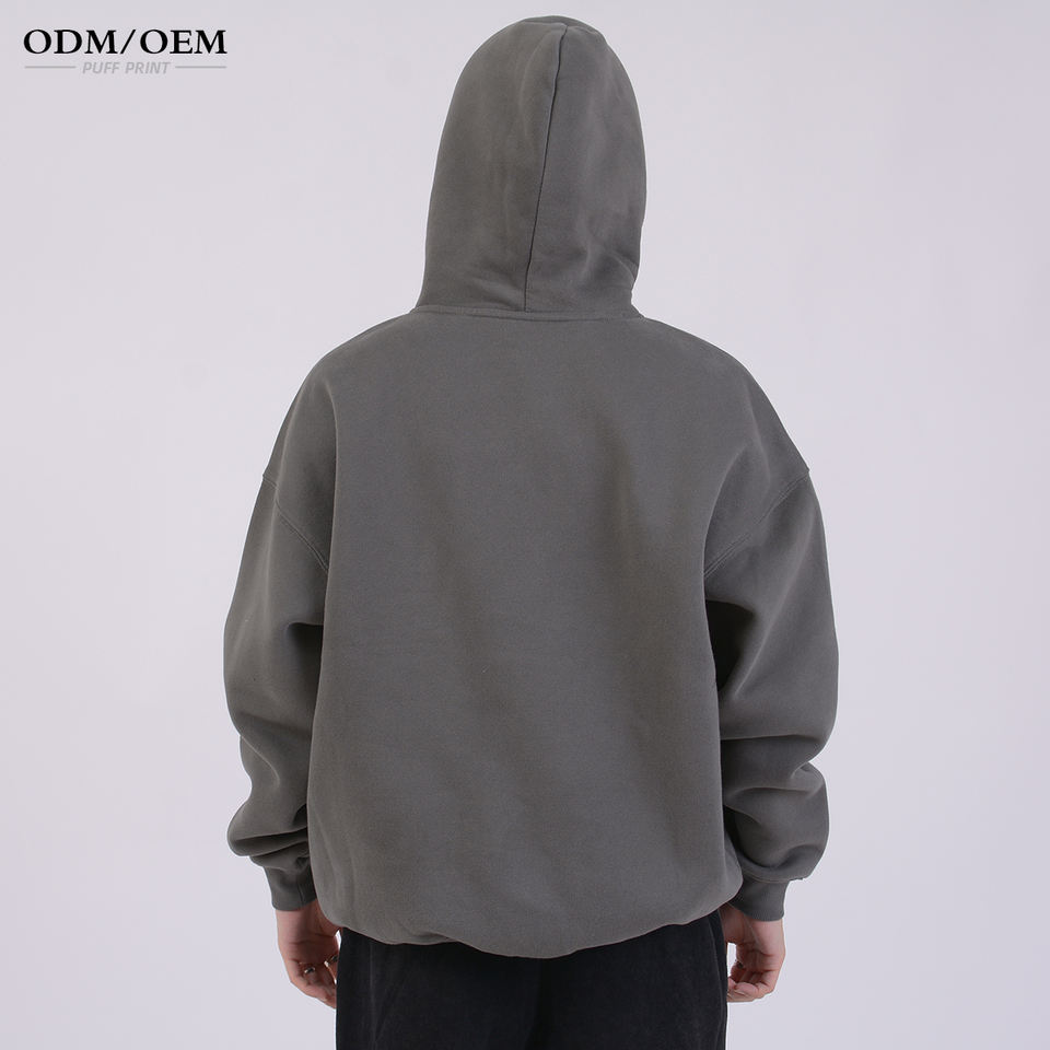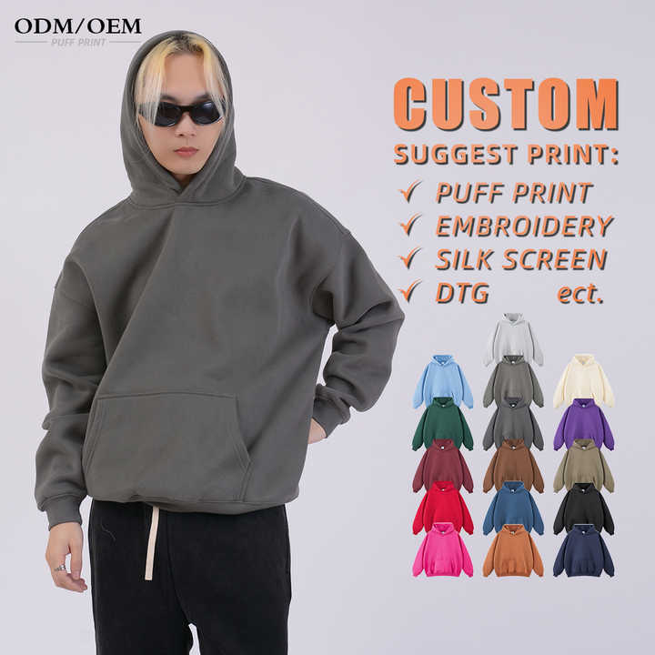 ออกแบบโลโก้ตามสั่ง เสื้อฮู้ดดี้สีดำสำหรับผู้ชาย ผ้าหนา 350 กรัม พิมพ์ลายพัฟฟ์ คุณภาพสูง