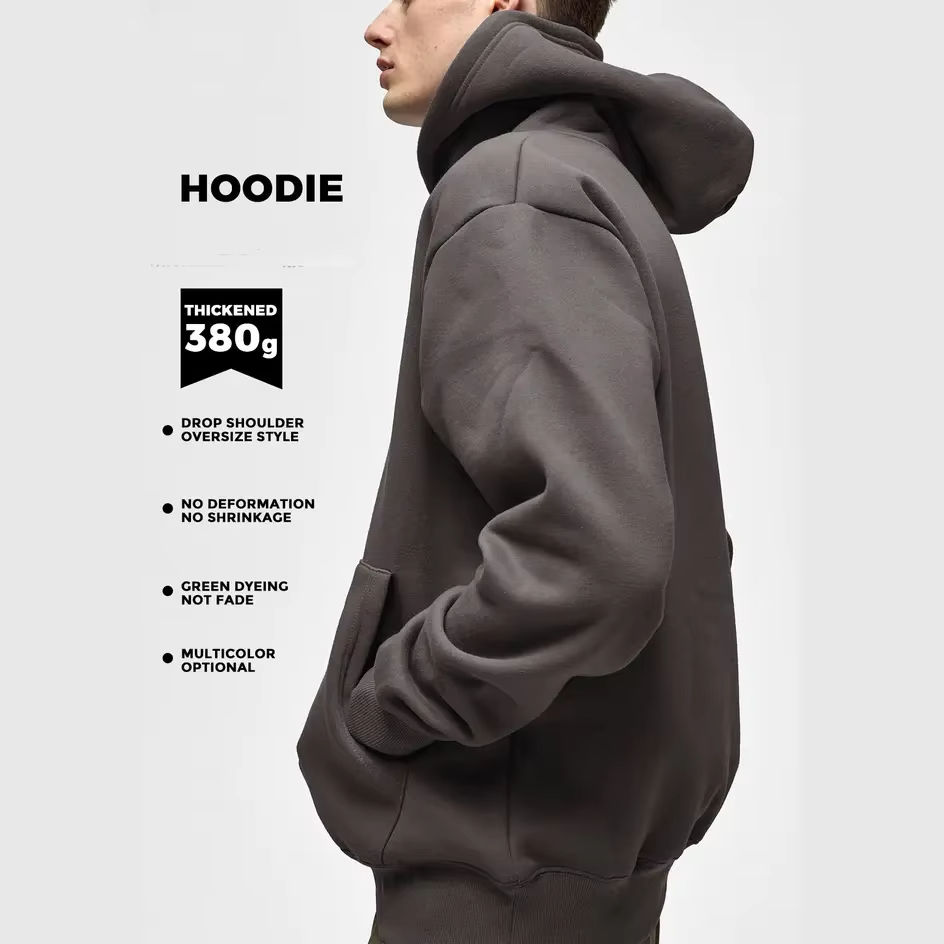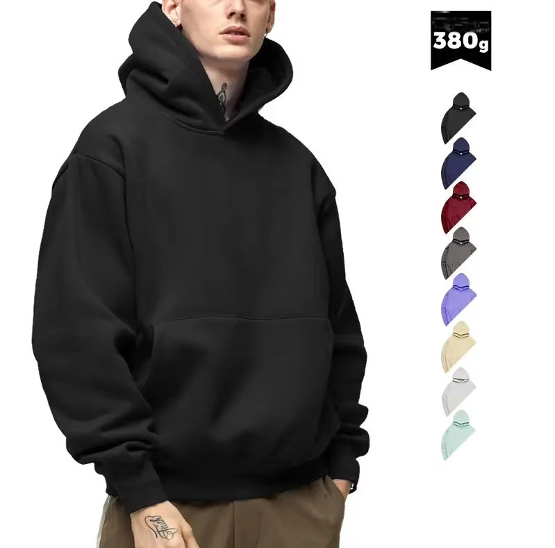 เสื้อฮู้ดผู้ชายสีดำมี400 GSM ผ้าฝ้ายหนาแบบเรียบมีฮู้ดแบบกำหนดโลโก้ออกแบบได้เอง