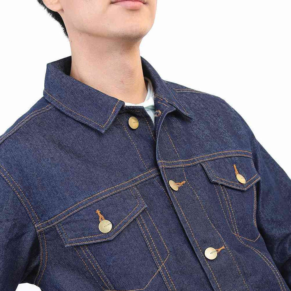 ออกแบบโลโก้ตามสั่ง เสื้อแจ็คเก็ตยีนส์ผู้ชายระบายอากาศได้ดี สไตล์ไฮสตรีท ผ้าฝ้าย 100% ไซส์ใหญ่ เสื้อแจ็คเก็ตยีนส์ผู้ชาย บริการ OEM