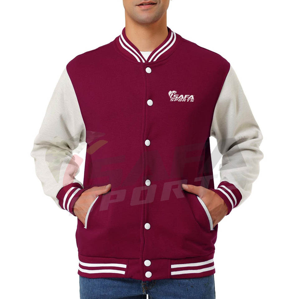 แจ็กเก็ตเบสบอลสำหรับผู้ชายแจ็คเก็ตเลตเทอร์แมนดีไซน์ปกตั้งออกแบบโลโก้ได้ตามต้องการ