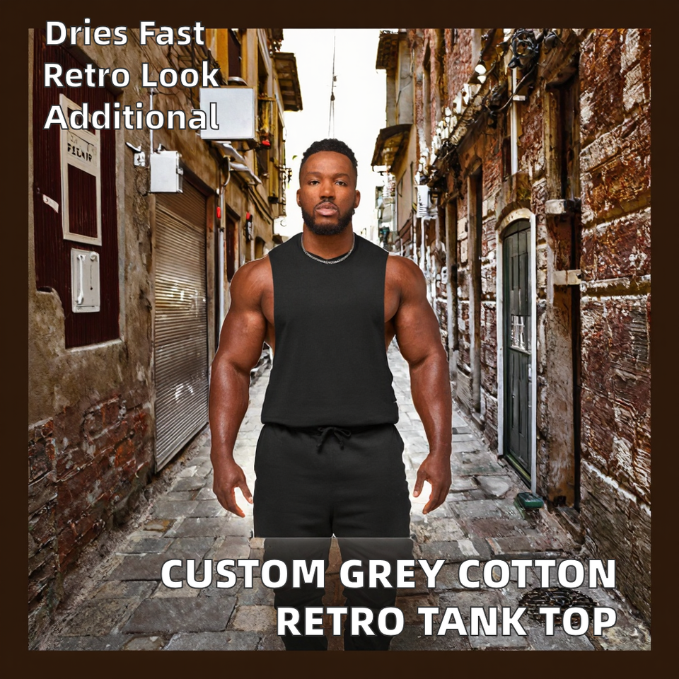 เสื้อกล้ามผู้ชายผ้าฝ้ายถักทรงหลวมสไตล์วินเทจสีเทา ระบายอากาศได้ดี ออกแบบโลโก้ได้ตามต้องการ