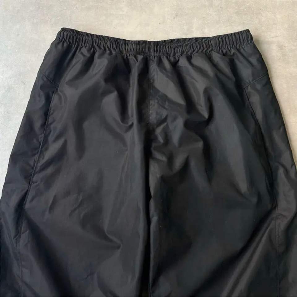 กางเกงวิ่งขากว้างสำหรับผู้ชายกางเกงวอร์มผ้าไนลอนซับในสีดำมีซิปดีไซน์โลโก้ตามสั่ง