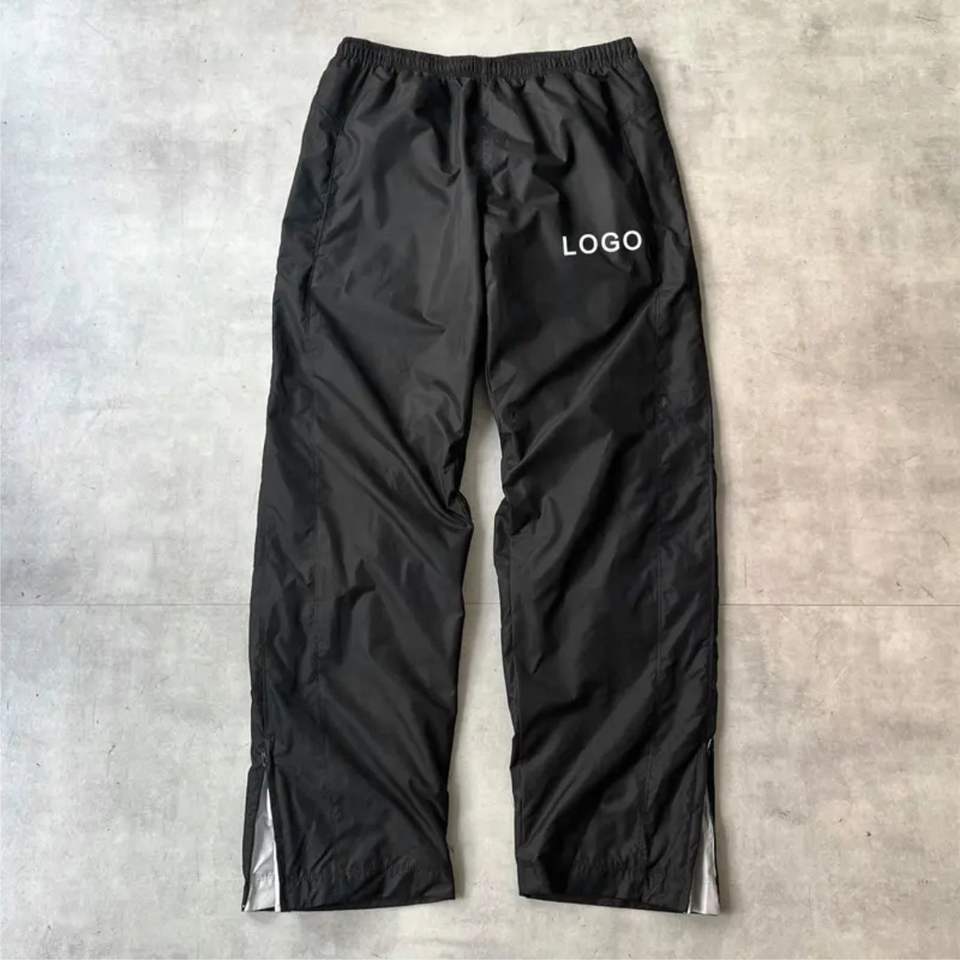 ออกแบบโลโก้ตามสั่ง กางเกงวอร์มขายาวทรงหลวมบุผ้าสีดำคุณภาพสูงสำหรับผู้ชาย ทำจากไนลอน มีซิป