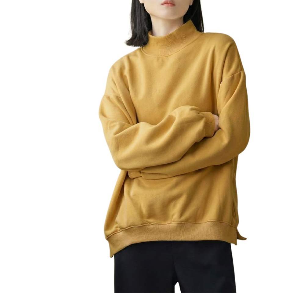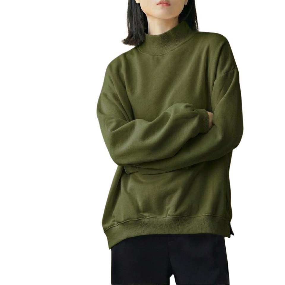 Custom Logo Design Mock Neck Sweatshirt Oversized Olive Green Pullover Heavyweight Cotton Streetwear Sweatshirt