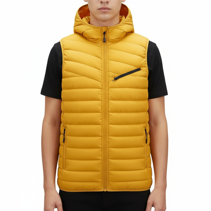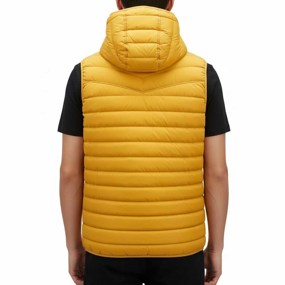 ออกแบบโลโก้ตามสั่ง เสื้อกั๊กพัฟเฟอร์คุณภาพดีสำหรับฤดูหนาว แบบพับเก็บได้ แจ็คเก็ตพัฟแขนยาวผู้ชาย สีพื้น ซิป OEM