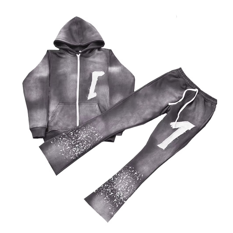 ชุดวอร์มสองชิ้นแนวสตรีทวินเทจสีจางลงพิมพ์โลโก้ออกแบบได้ตามต้องการ