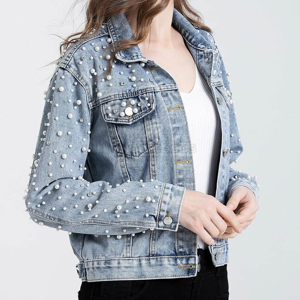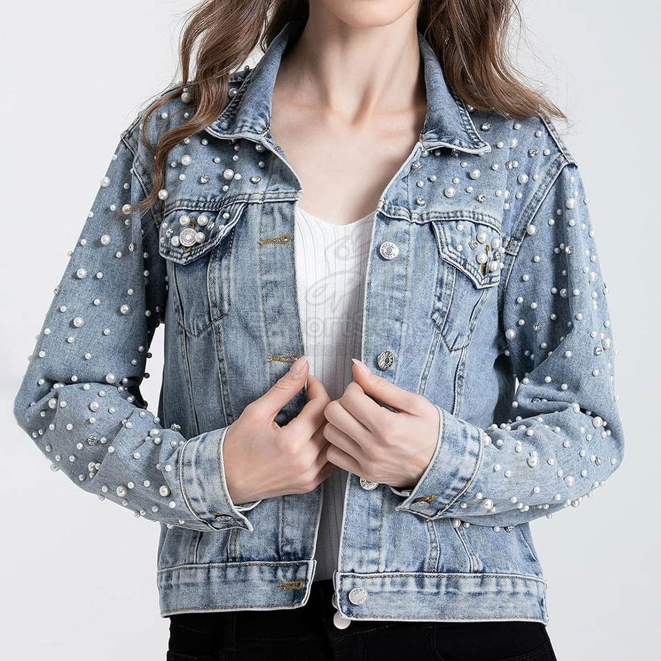 ออกแบบโลโก้เอง เสื้อแจ็คเก็ตยีนส์ผู้หญิง ขายส่ง เสื้อแจ็คเก็ตยีนส์ผู้หญิงระบายอากาศ มีสินค้าในสต็อก