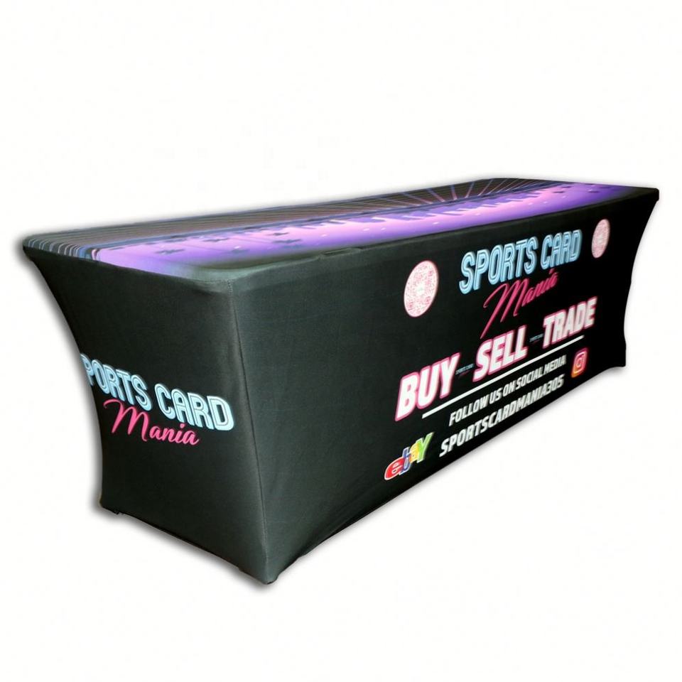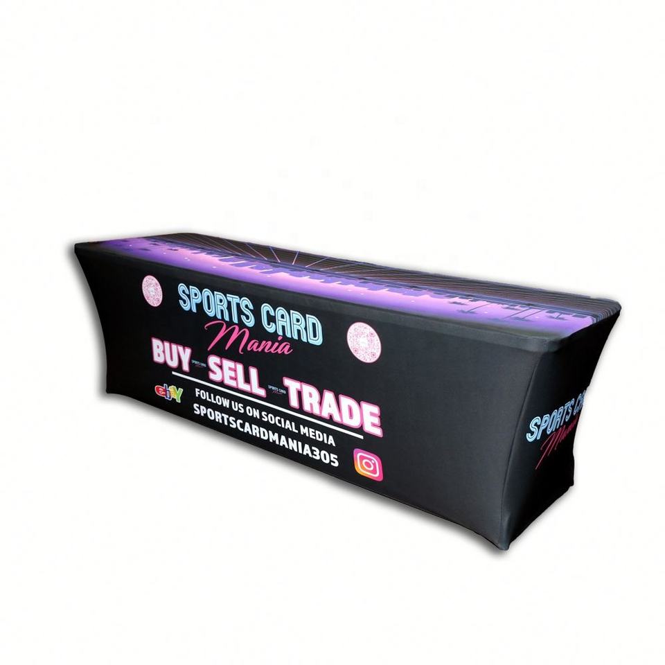 ผ้าปูโต๊ะพับได้สำหรับงานแสดงสินค้า พิมพ์ลายดิจิทัล ออกแบบโลโก้เองได้ ผลิตจากโพลีเอสเตอร์ ขนาด 4 ฟุต 5 ฟุต 6 ฟุต 8 ฟุต