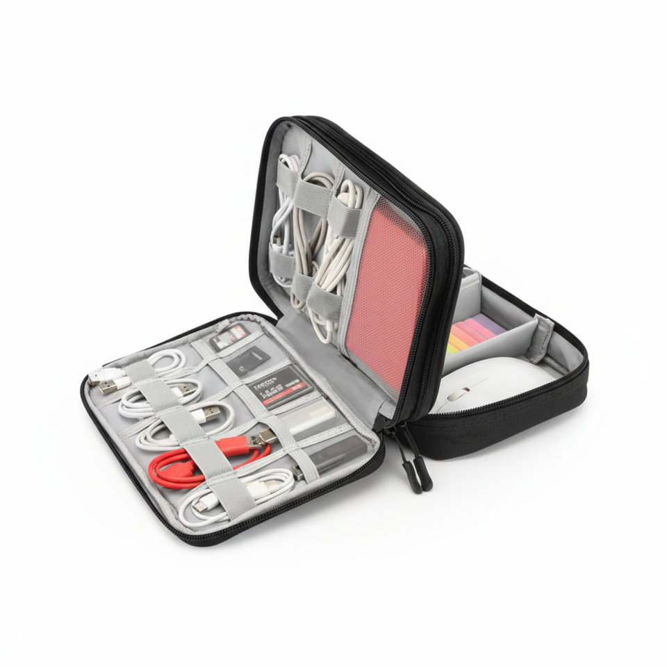 กระเป๋าเก็บแบตเตอรี่อุปกรณ์ดิจิทัลแบบมีโลโก้สั่งทำได้ สองชั้น ประหยัดพื้นที่ สำหรับจัดเก็บแบตเตอรี่โทรศัพท์มือถือ