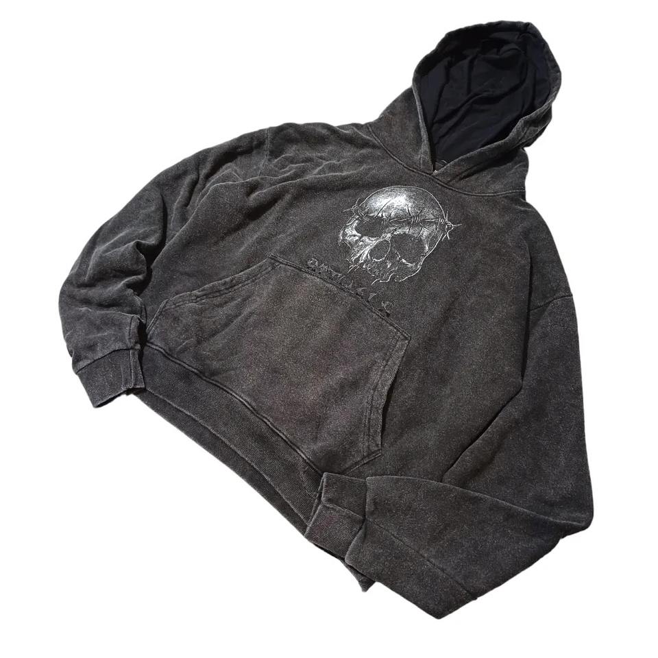 เสื้อมีฮู้ดสำหรับผู้ชายเสื้อมีฮู้ดพิมพ์ลายดิจิตอลโลโก้แบบวินเทจโอเวอร์ไซส์