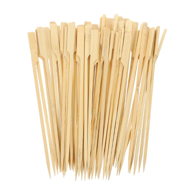 Custom Logo Disposable 18cm/25cm Bamboo BBQ Skewers with Polished Handle Biodegradable Natural Bamboo Sticks