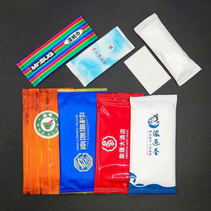 ผ้าเช็ดทำความสะอาดแบบเปียกพกพา ใช้แล้วทิ้ง พิมพ์โลโก้ได้ ขนาดเล็ก บรรจุภัณฑ์แยกชิ้น ผลิตจากผ้าไม่ถักทอ เหมาะสำหรับร้านอาหาร ใช้สำหรับทำความสะอาด